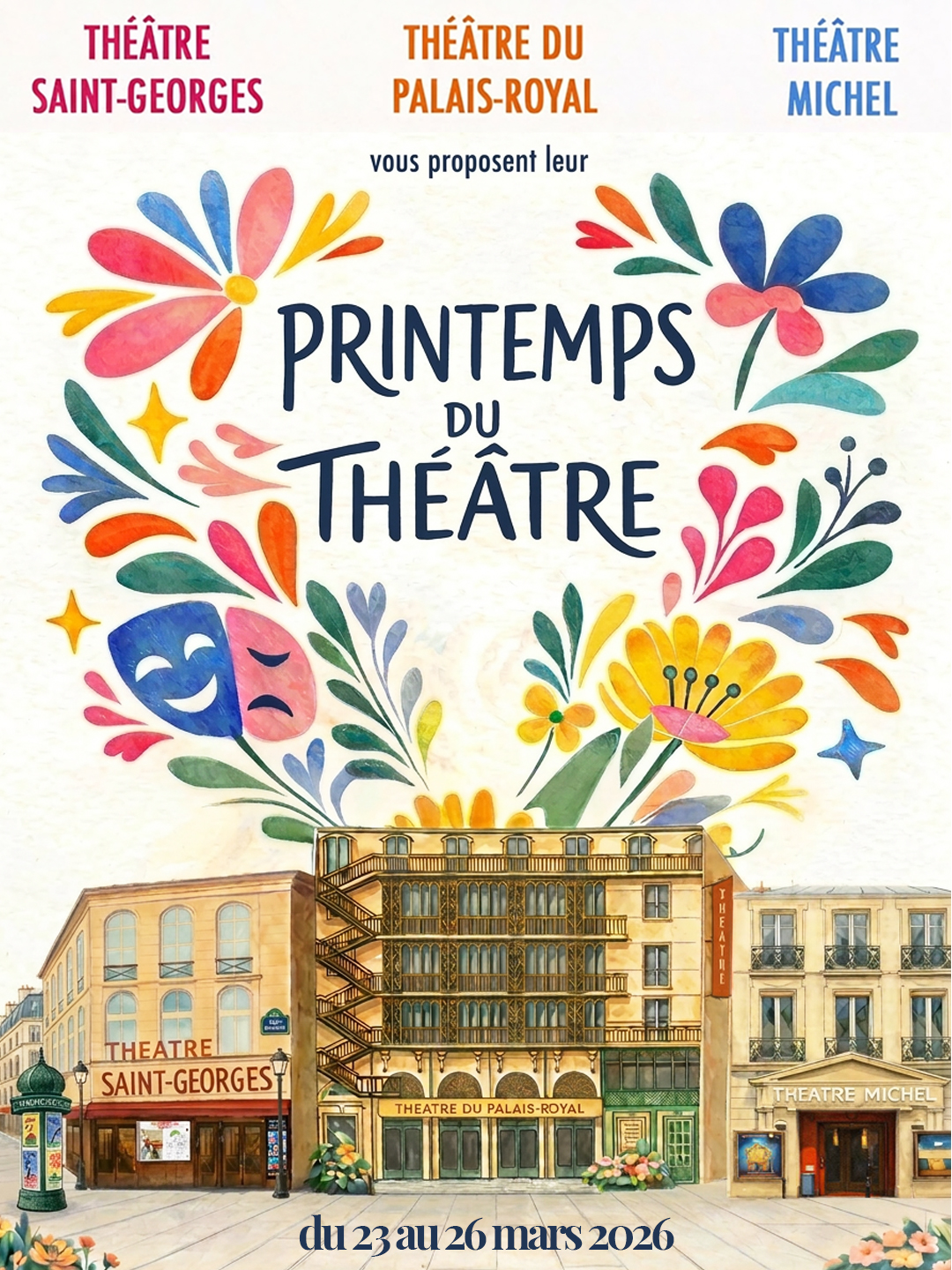 Cette année, trois grandes scènes parisiennes — le Théâtre Michel, le Théâtre du Palais-Royal et le Théâtre Saint-Georges — s’unissent pour lancer un événement inédit : Le Printemps du Théâtre !