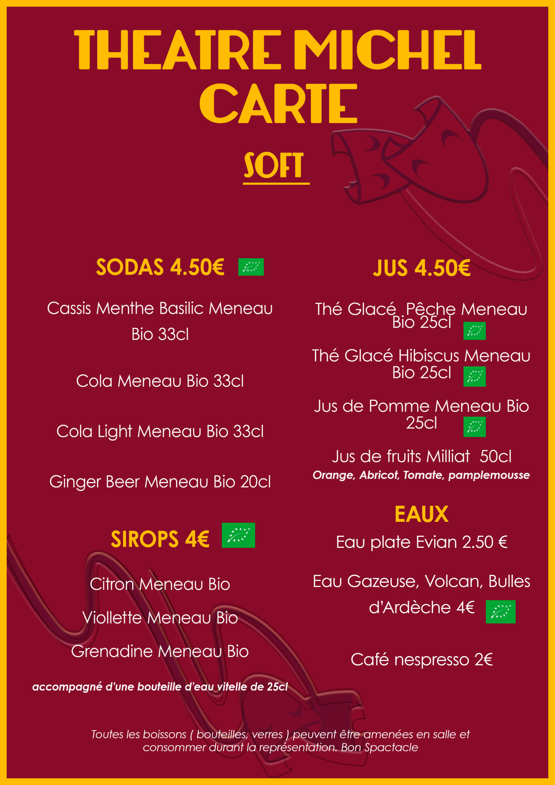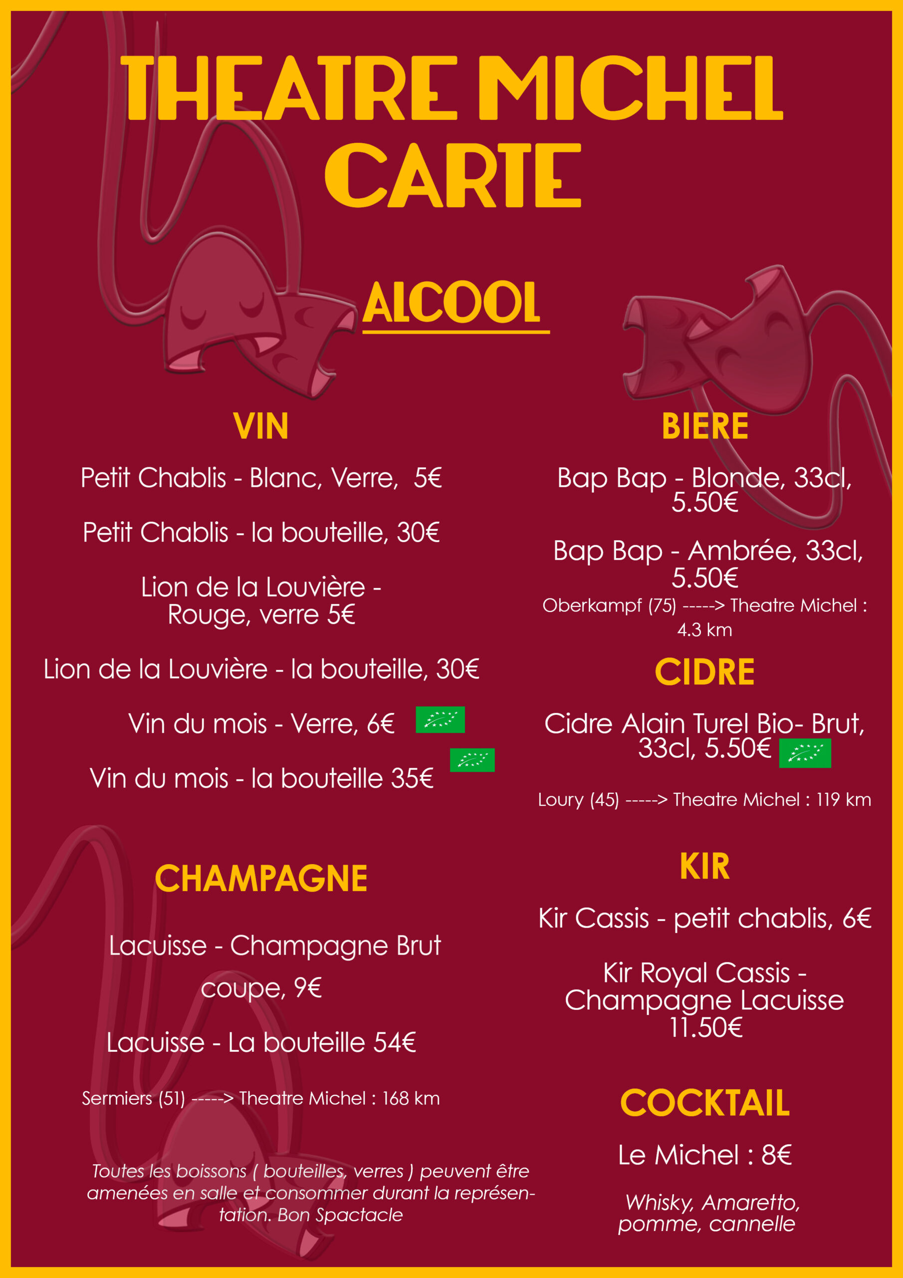 Le bar se trouvant à côté de la scène du théâtre, les horaires d’ouverture du bar dépendent des spectacles.